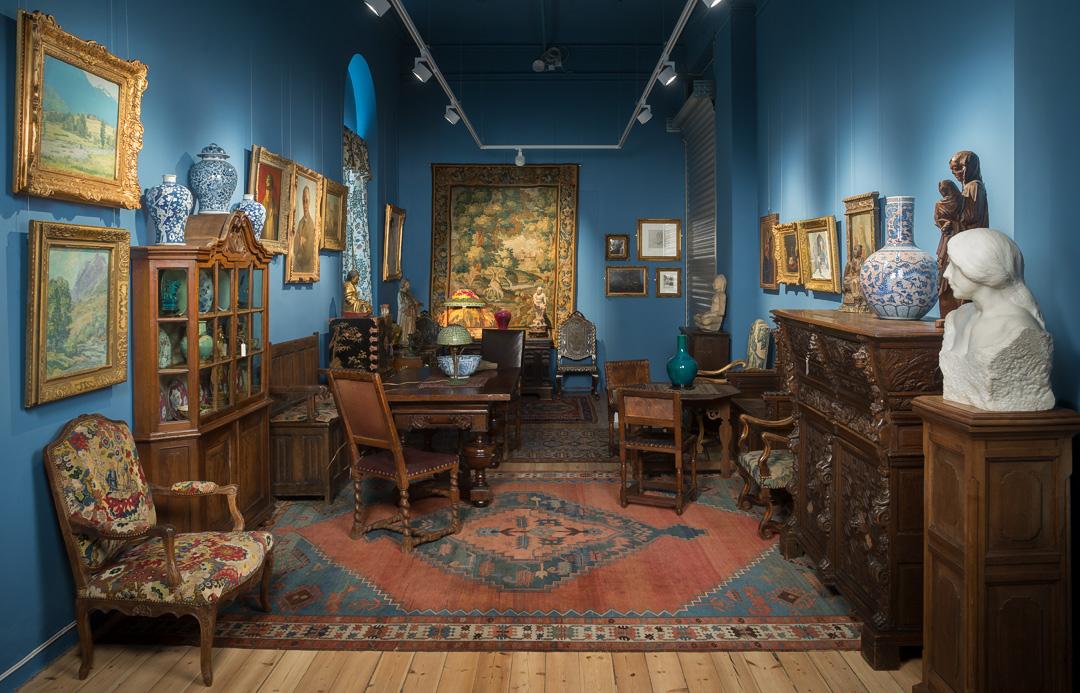 Anna Brugh Singer testamenterte en rekke møbler, antikviteter og bilder til Vestlandske Kunstindustrimuseum, og i 1963 åpnet museet sin første presentasjon av Singersamlingen. Her, i dette rommet, er det igjen forsøkt å skape et inntrykk av Singerparets hjem i Olden.